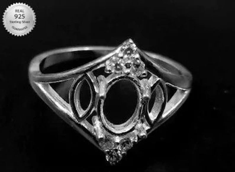 925 Sterling Silver Oval Shape Ring Bezel Diy For Cabochon & Faceted Gemstones.
