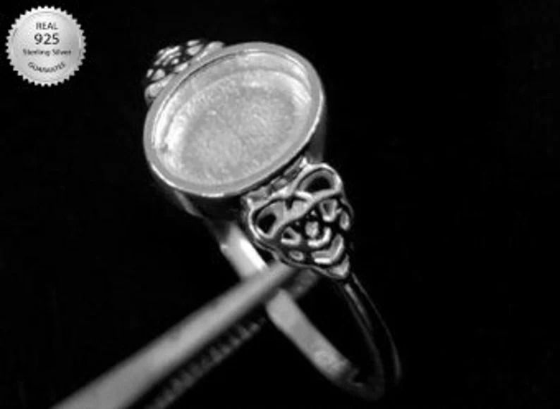 925 Sterling Silver Oval Shape Ring Bezel Setting For Resin & Gemstone Work.