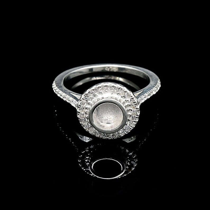 925 Sterling Silver Round Shape 6MM Bezel Ring Setting DIY Cup With CZ. Bridge.